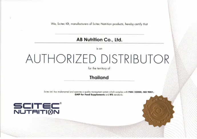 ● ผลิตภัณฑ์ SCITEC NUTRITION ได้รับการรับรองตามมาตรฐาน GMP, HACCP, ISO 9001, FSSC, IFS และได้รับการจดทะเบียนกับ FDA
